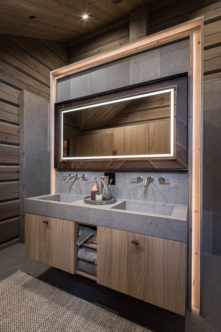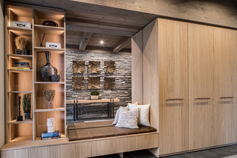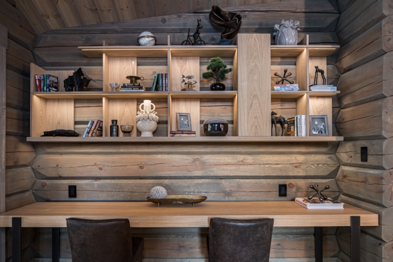 I tett samarbeid med interiørdesigner 2AM Design har LHM Interiør fått ansvaret for den komplette produksjonen, og leveringen av alle innebygde skap i hele hytten. Hvert skap er laget på fabrikken vår, noe som gjenspeiler både kvalitet og eleganse.