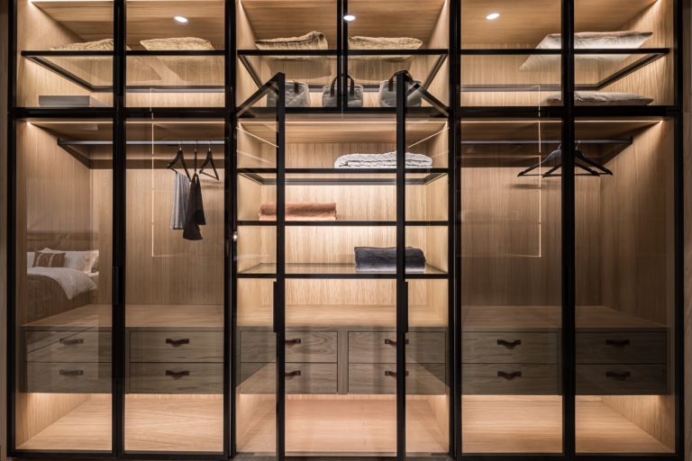 I tett samarbeid med kunden og 2AM Design var LHM Interiør ansvarlig for hele serien med spesialtilpassede skap i boligen, inkludert kjøkken, garderober, servantskap og integrert oppbevaring. Alle enhetene ble bygget av børstet eikefiner, valgt for sin varme tone og særegne tekstur.