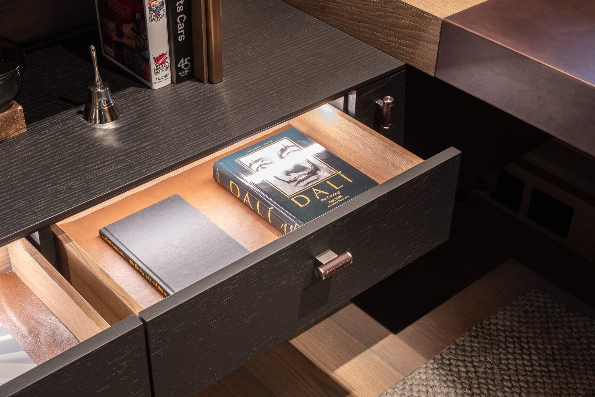 We use Blum fittings for all our furniture. This is a brand known for its high quality and many design options. All hinges used for doors have a soft-close damping system, which comes in two colors; plain chrome and black “Onyx” for dark furniture.